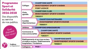 Depuis le 2 janvier, différents dispositifs sont ouverts. Ils sont basés sur le programme Sport et Solidarités 2026-2028 affirmant l’héritage des JOP 2024 dans les Yvelines qui s’inscrit dans une ambition vers les publics les plus sédentaires ou éloignés de la pratique sportive.